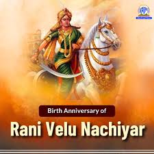 3 जनवरी 1730 को जन्मी वेलु नचियार 18वीं शताब्दी के दौरान वर्तमान तमिलनाडु में शिवगंगई रियासत की रानी थीं। रानी वेलु नचियार युद्ध कलाओं और तीरंदाजी में प्रशिक्षित थीं। उन्हें फ्रांसीसी, उर्दू और अंग्रेजी समेत कई भाषाओं में भी निपुणता हासिल थी। रानी नचियार को ब्रिटिश औपनिवेशिक सत्ता के खिलाफ लड़ाई लड़ने वाली पहली रानी के रूप में जाना जाता है। 1780 में रानी वेलु नचियार अंग्रेजों से निडर होकर लड़ीं और उन्हें परास्त किया। तमिलनाडु के लोग आज भी उन्हें वीरमंगई यानी बहादुर रानी के नाम से जानते हैं।